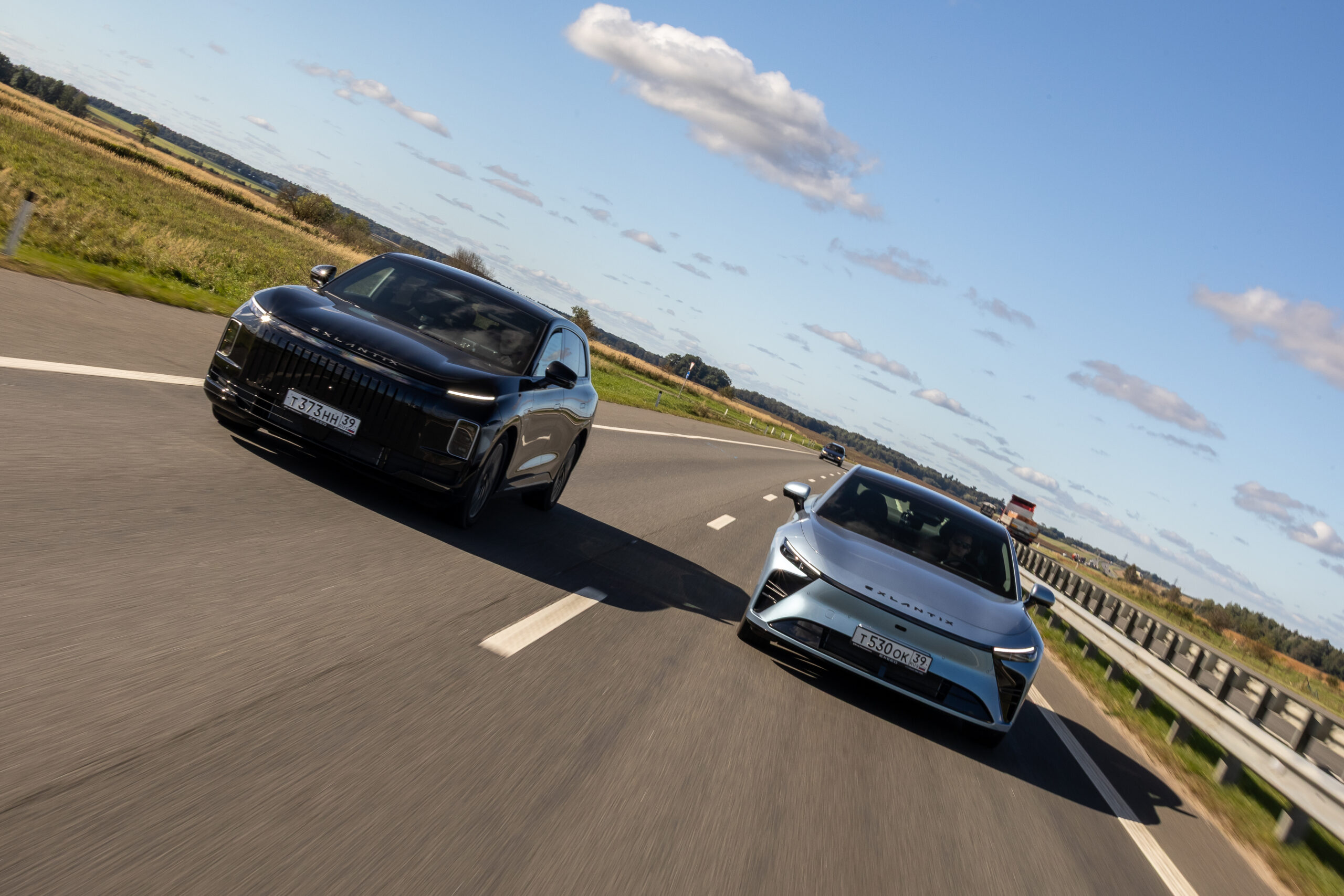 Оба автомобиля, предоставленные для теста, — с минимальным пробегом. Они поступили в пресс-парк EXEED EXLANTIX всего несколько недель назад. Агрегатная база идентична — автомобили оснащены двумя разнесенными по осям электромоторами совокупной мощностью 469 л. с., обеспечивающими полноприводный потенциал. Бензиновый 1,5-литровый 143-сильный турбоагрегат используется исключительно для подзарядки тяговой батареи на 40 кВт⋅ч. На ускорение с 0 до 100 км/ч у ET и ES уходит 4,8 и 4,6 с соответственно, а максимальная скорость составляет в обоих случаях 190 км/ч. Коэффициент аэродинамического сопротивления в обоих случаях внушителен — 0,28 и 0,23.